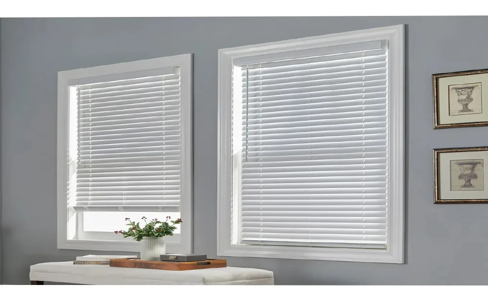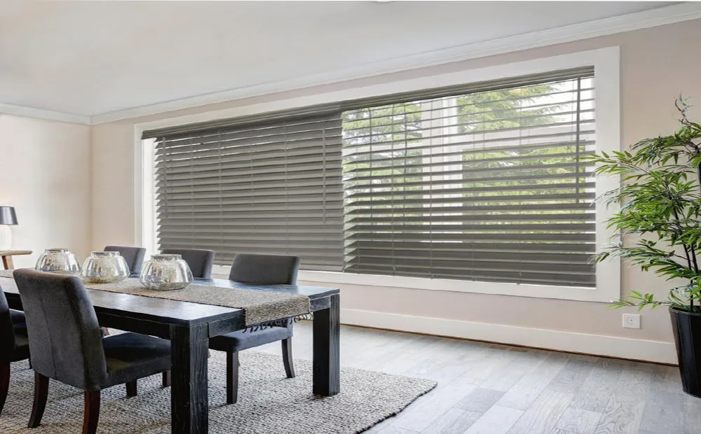 Faux wood blinds are an alternative to real wood blinds. Made of a composite of man-made materials and natural wood particles, faux wood can be a less expensive choice than natural wood.